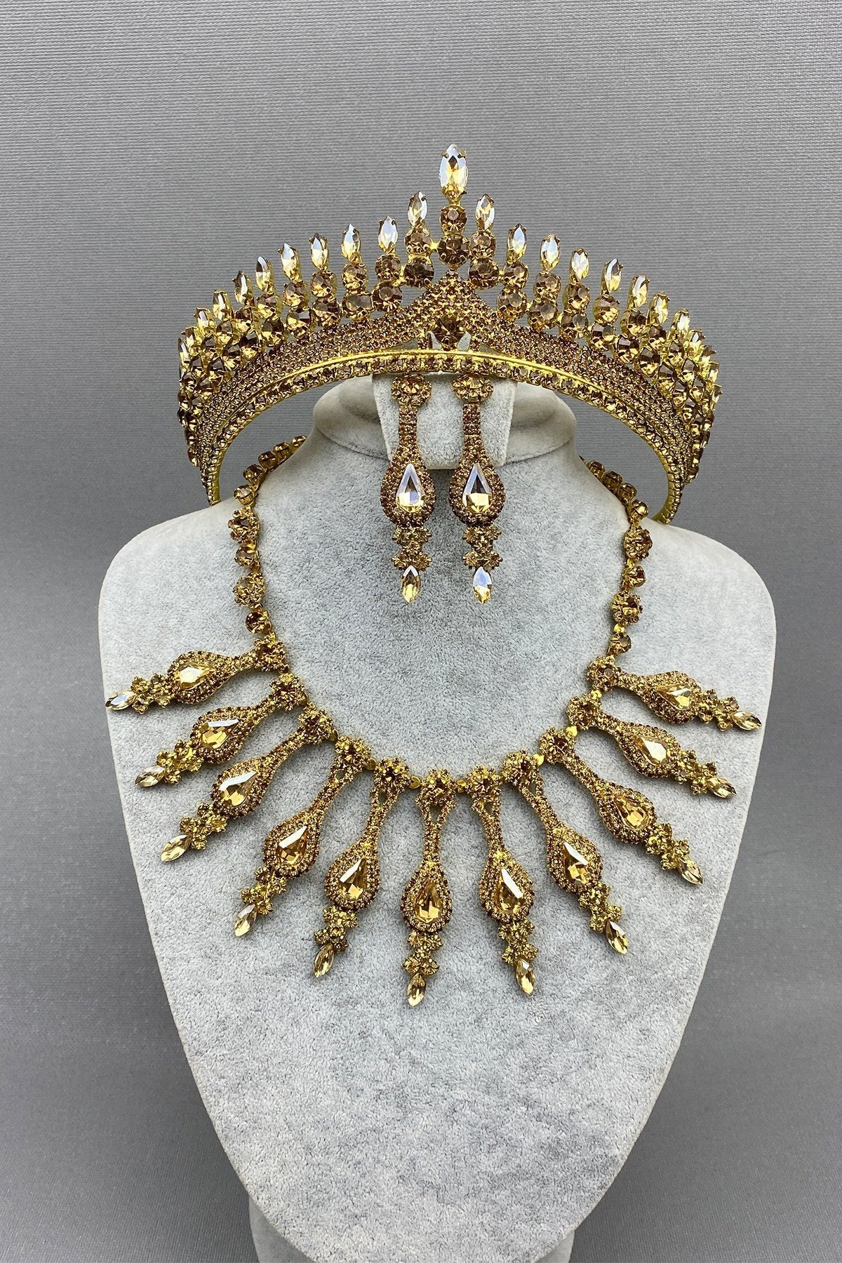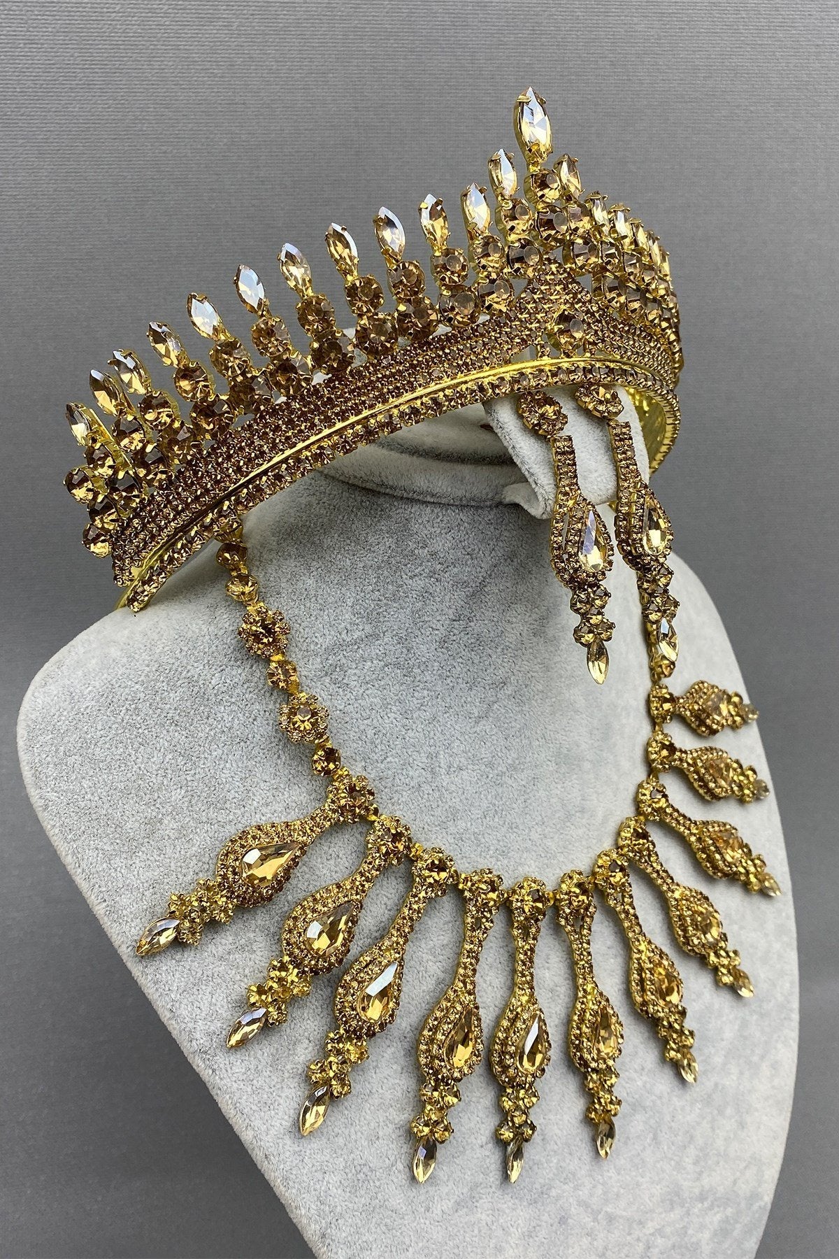 Anteras Bridal Henna Crown and Necklace Set Our Special Design Crowns Most Preferred by Brides as Accessories on Henna Dresses and Bindalı. Handmade with Glass Stone Embroidery, Products That Can Be Preferred by Brides Who Want an Eye-Catching and Elegant Accessory...