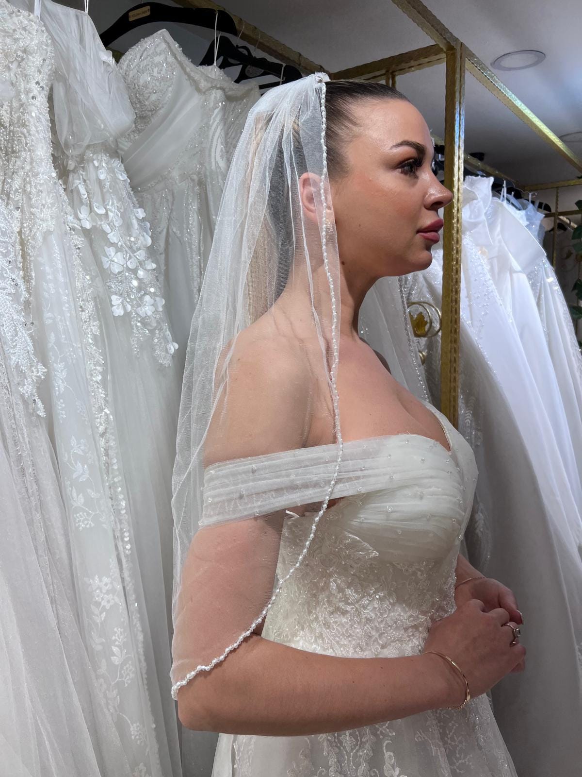 Add an extra touch of elegance with this beautiful handmade, pearl and crystal beaded edge bridal veil!