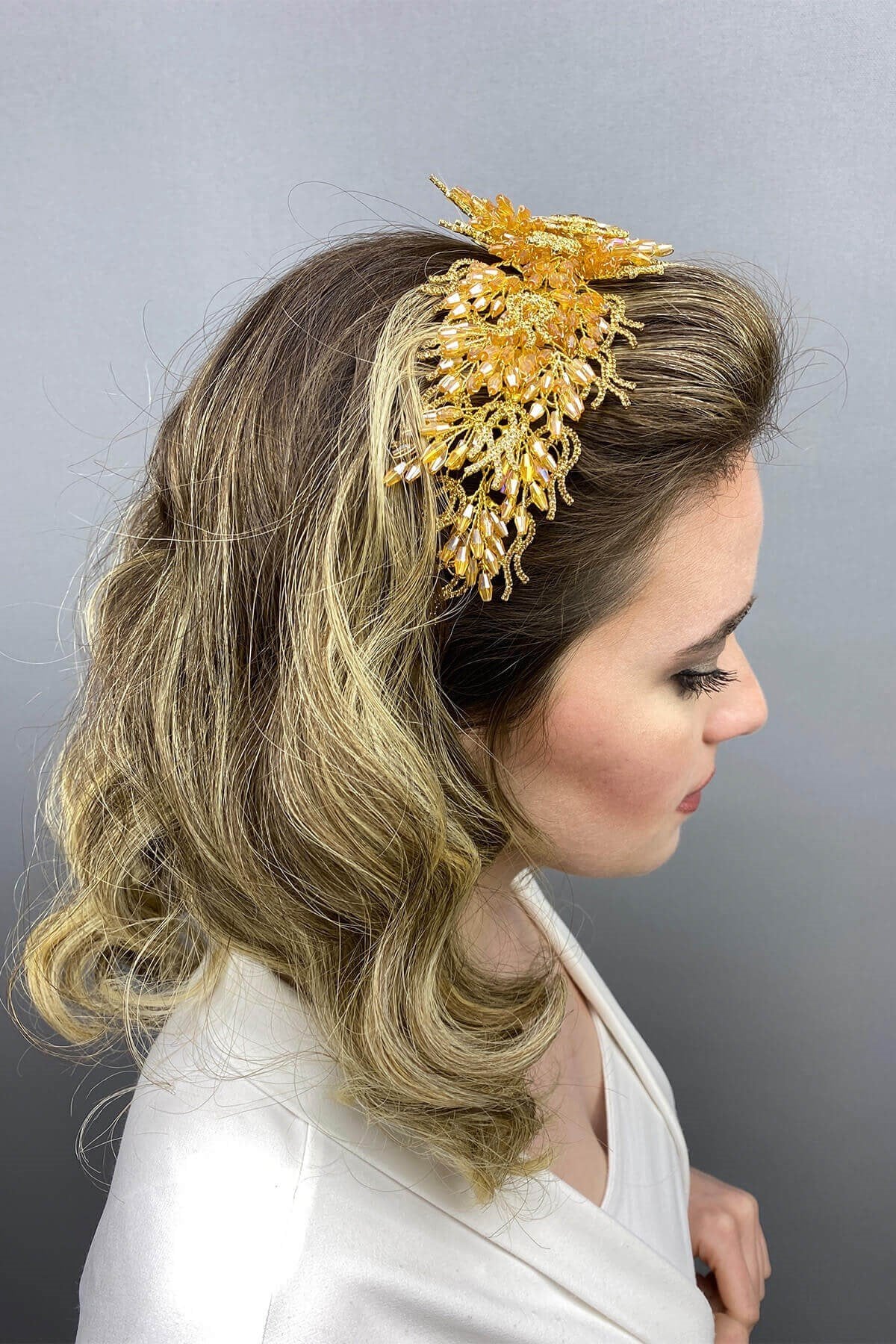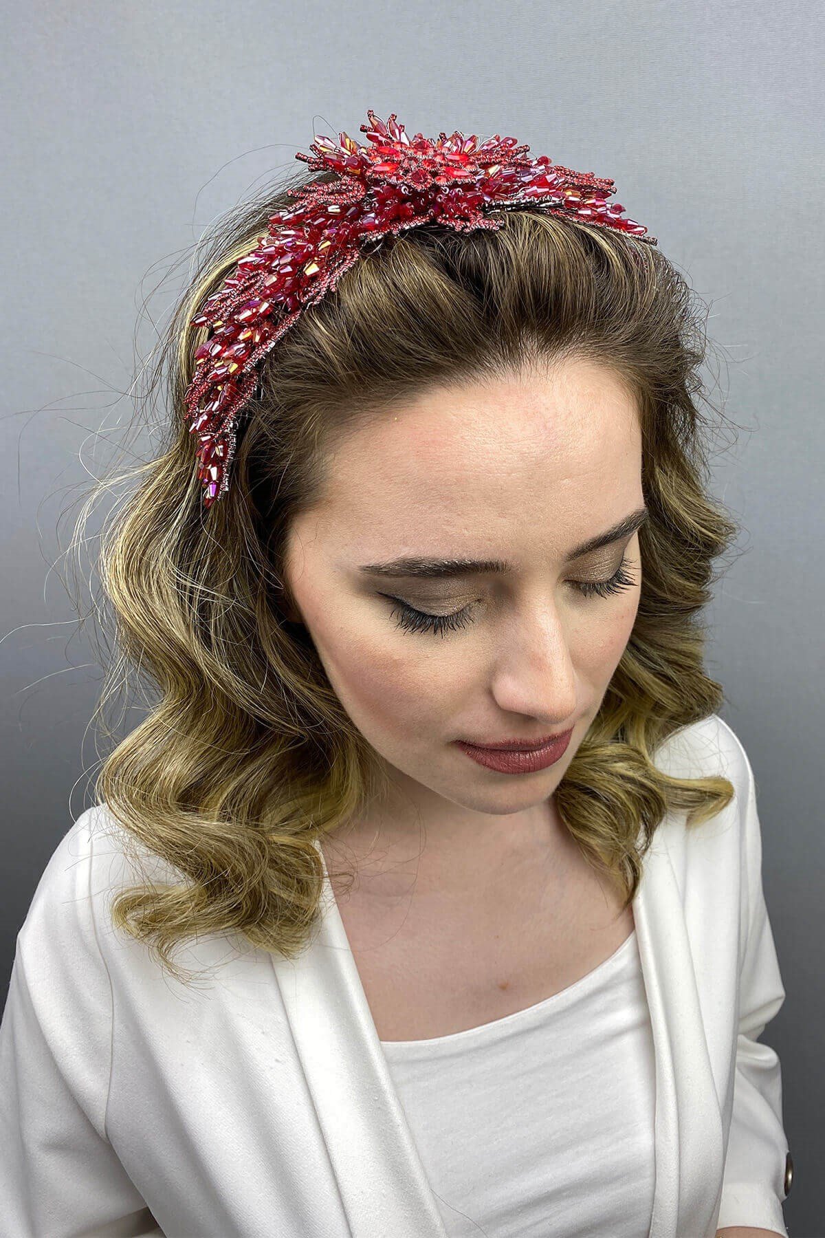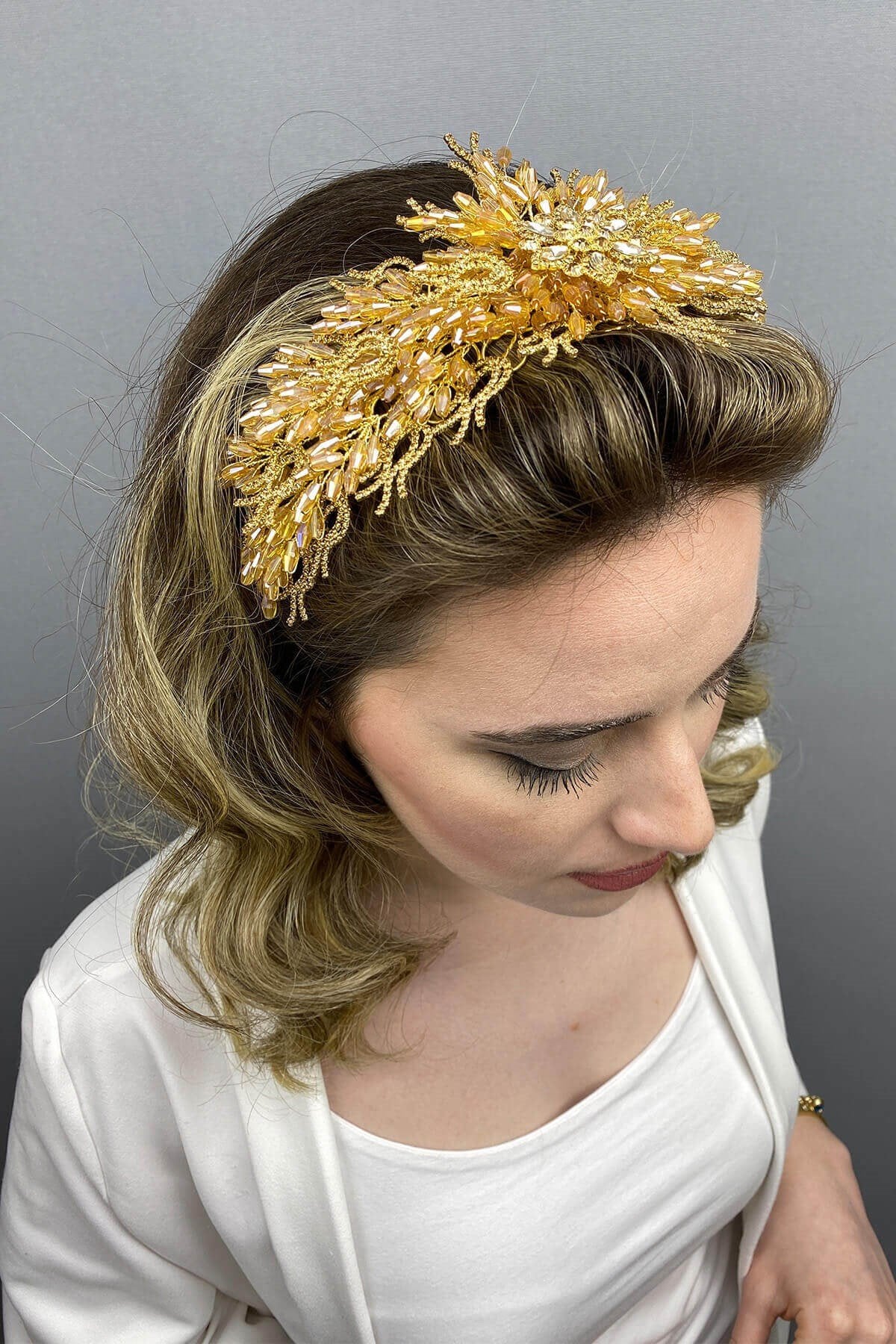 Alya Model Bridal Henna Crown is a colorful handcrafted henna crown model that is most preferred by brides as an accessory on their henna dresses and henna bindings. A bridal henna crown that can be preferred by brides who want a very eye-catching and elegant accessory and a model that can also be used as a crown on a turban if you wish.